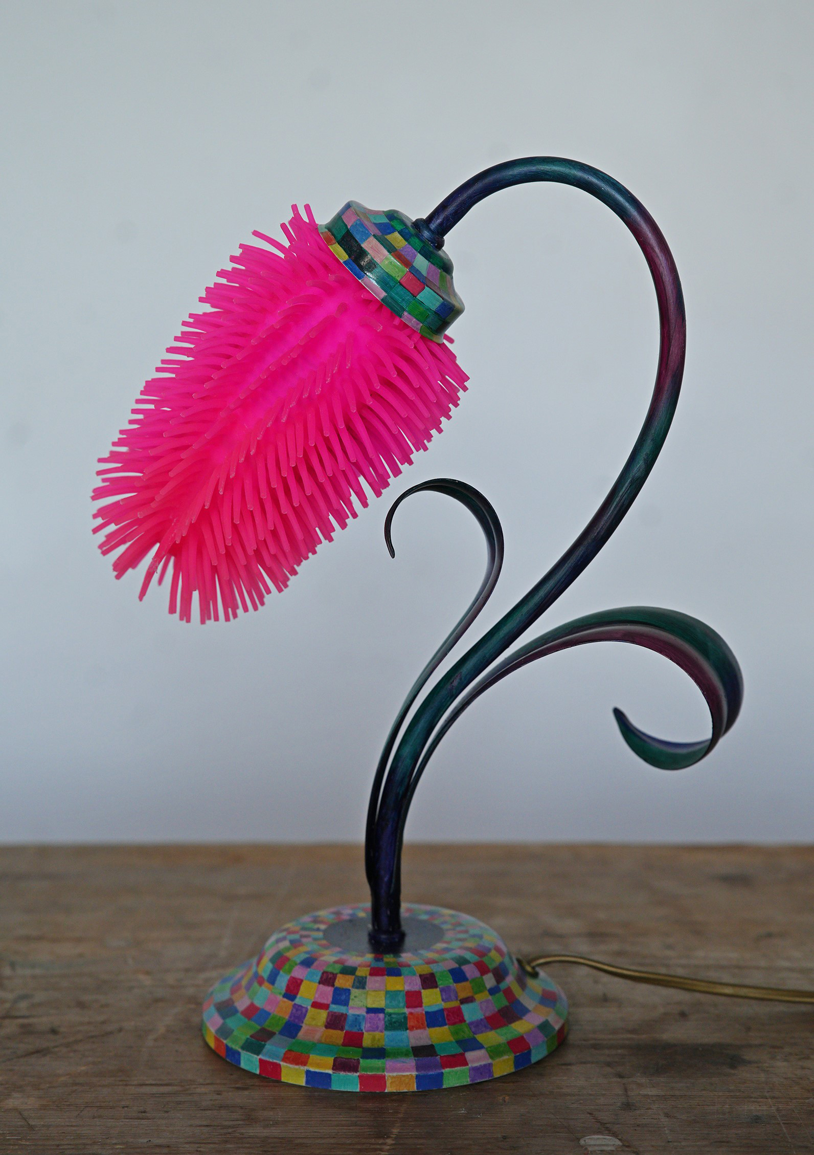 Gaby Weißenfels, in Schwedt (Uckermark) geboren und in Berlin aufgewachsen, machte sie erste Erfahrungen mit Theater durch ihre Tätigkeit an der Staatsoper Berlin und im Berliner Ensemble (Werkstatt für Theaterplastik). 1990 gründete sie das Puppentheater Karotte und spielt seitdem für Kinder und Erwachsene. Im Theater ist sie Spielerin, schreibt Texte, baut Figuren und Bühnenbilder. Ihre Faszination für Erzählungen, das Wechseln zwischen unterschiedlichen Rollen und Ausdrucksformen findet sich auch in ihrem künstlerischen Schaffen unter dem Pseudonym Ella von Freyenstein wieder. Nach ihrer Ausstellung »Lampenfieber« vor 1 Jahr im Kurt Tucholsky Literaturmuseum von Schloss Rheinsberg/Brandenburg zeigt sie nun in »Lampenfieber II« in der werkschau.galerie eine Auswahl ihrer phantasievollen Lampenobjekte und Stühle, Zeichnungen und Malerei.